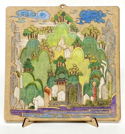 <교구재 체험> - 체험기간 : 국보순회전 전시 기간 중 매주 토요일 (10.25 / 11.1. / 11.8. / 11.15. / 11. 22. / 11.30.) 10:00~15:00 운영 (12:00~13:00 점심시간 제외) - 체험내용 : 백제문양전(산수풍경무늬)를 주제로 한 우드액자 체험 - 체험대상 : 어린이 관람객