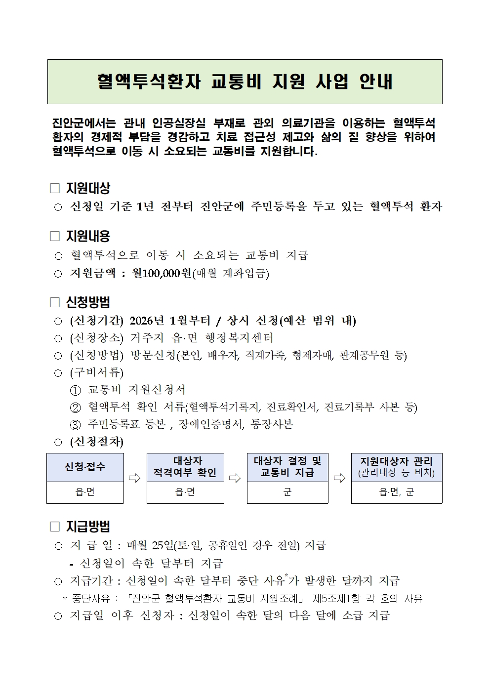 혈액투석환자 교통비 지원 사업 안내 저작물은 "자유이용이 불가"합니다.