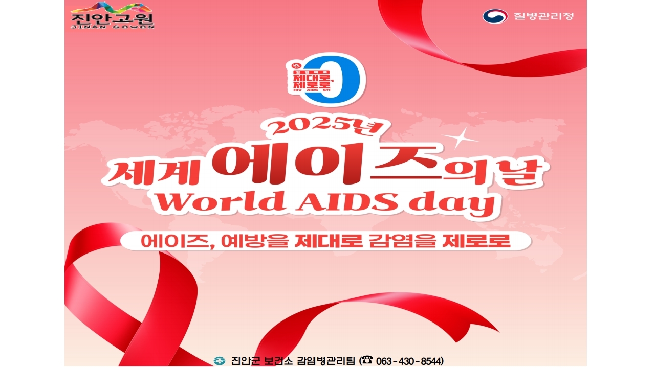 진안군보건소는 12월 1일부터 7일까지‘에이즈 예방 주간’을 운영하며 감염인에 대한 사회적 인식 개선과 조기 검진의 중요성 홍보에 나선다.에이즈는 HIV 감염으로 인해 면역 기능이 약화되어 각종 질환에 취약해지는 감염병이나, 꾸준한 치료와 관리로 일상생활이 가능하다. 주된 감염 경로는 성 접촉이며, 일상적인 접촉으로는 전파되지 않는다.보건소는 안전한 성생활 실천과 정기적 검진을 통한 예방의 중요성을 강조하며, 성 접촉 시 예방수칙 준수 및 감염 의심 시 신속한 검사 시행을 안내하고 있다. 또한 HIV 무료·익명 검사와 매독 무료 검진을 상시 제공하고, 감염인에게는 진료비 지원도 시행하고 있다.오는 12월 4일에는 진안고원 시장과 터미널에서 예방 캠페인을 실시하여 무료 검진 안내와 인식 개선 활동을 전개할 예정이다. 아울러 관내 고등학교 및 공공기관에 홍보물을 배부하여 청소년과 군민의 성 매개 감염병 인식 제고를 도모할 계획이다.문민수 진안군보건소장은“이번 홍보 활동이 군민 모두가 감염병 예방을 생활화하는 계기가 되기를 바란다.”라며 “앞으로도 감염병 대응 역량 강화와 예방 환경 조성을 위해 지속적으로 노력하겠다”라고 밝혔다.