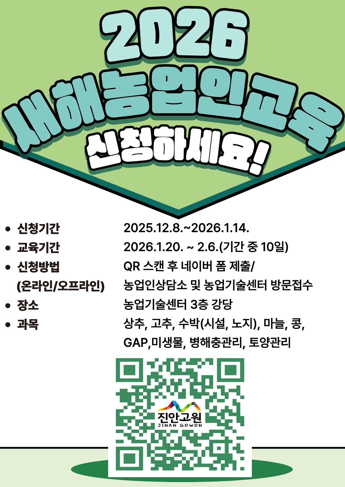 2026년 새해농업인 실용교육 계획을 다음과 같이 알려드립니다.