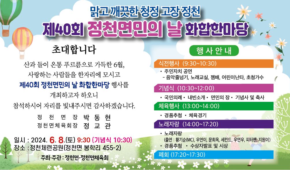 『제40회 정천면민의 날 화합한마당』에 초대합니다.