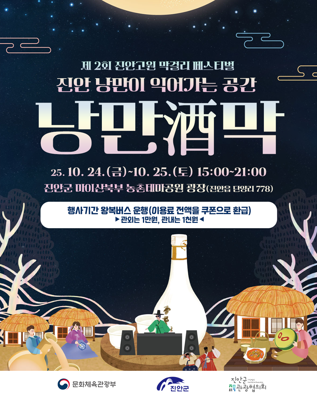 제2회 진안고원 막걸리 페스티벌 '낭만酒막' 행사가 개최될 예정이오니, 많은 관심과 참여 부탁드립니다.