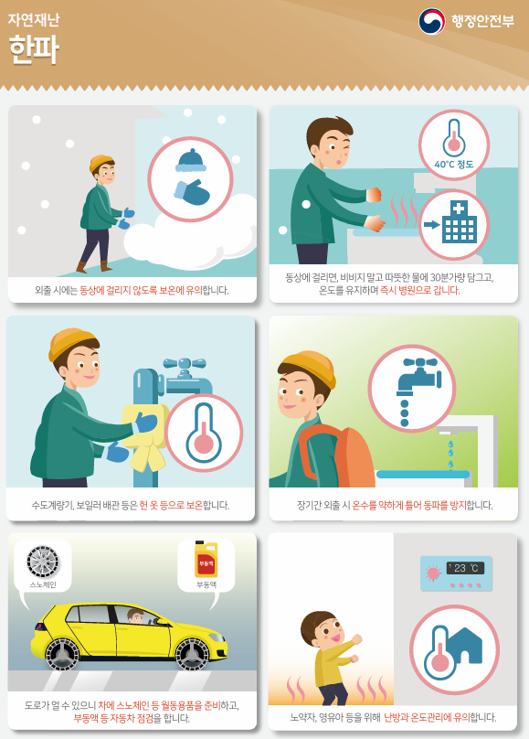 대설 및 한파 시 국민행동요령 안내드리니, 피해가 없도록 주의해주시기 바랍니다.