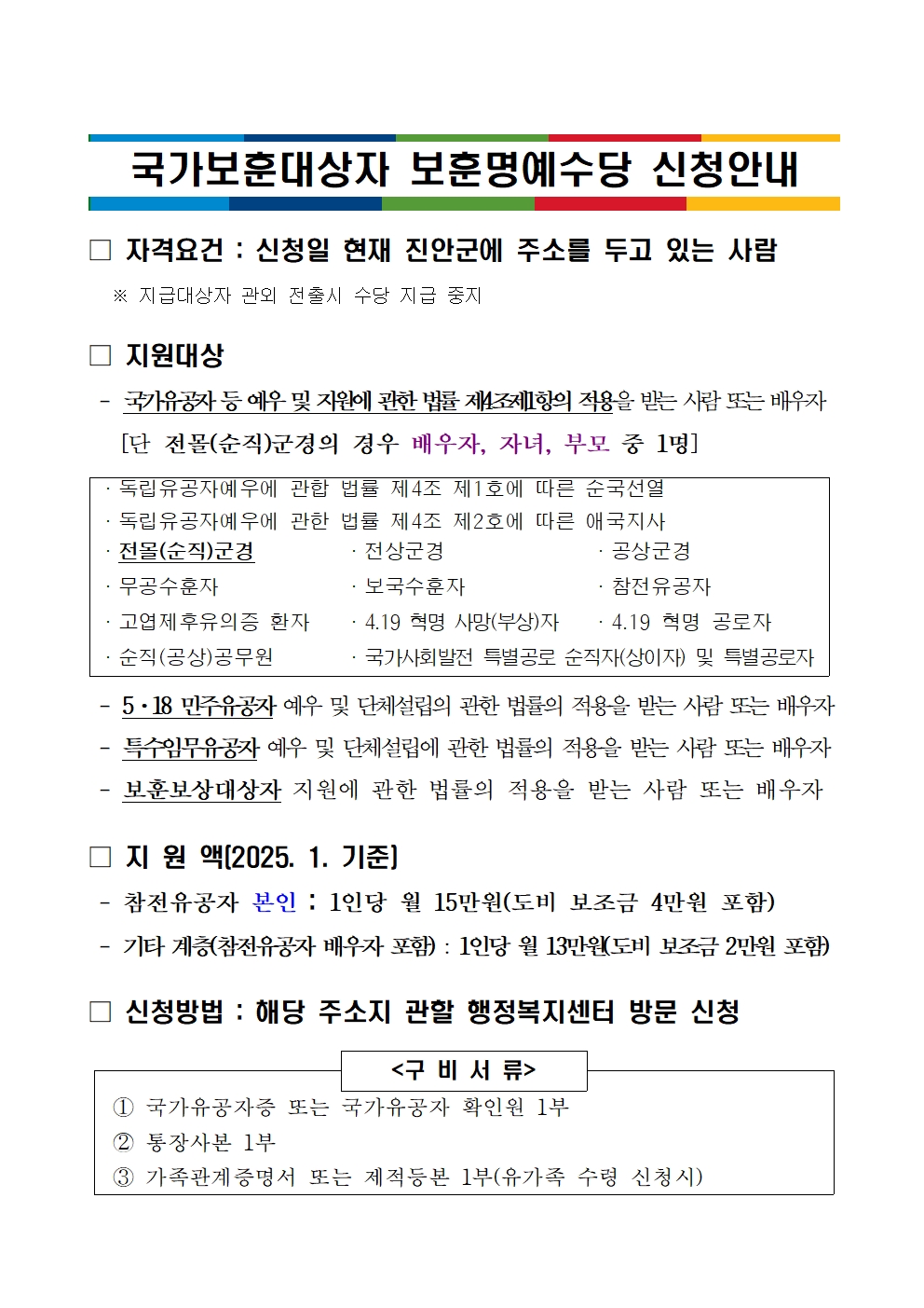 국가보훈대상자 보훈명예수당 신청안내 저작물은 "자유이용이 불가"합니다.